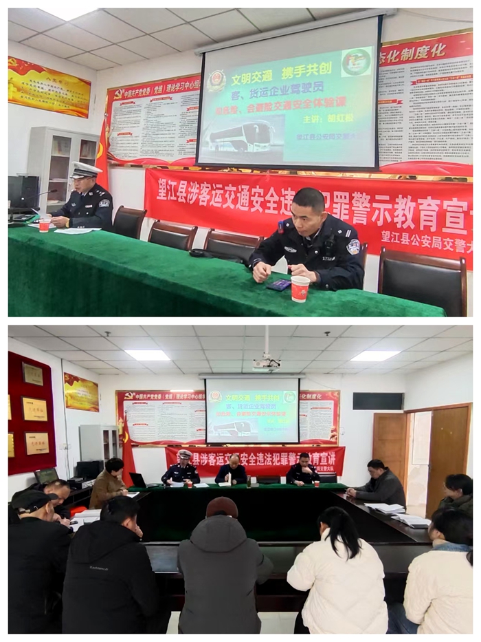 為深入貫徹落實(shí)道路交通安全專項(xiàng)整治行動(dòng)部署要求,切實(shí)強(qiáng)化客運(yùn)企業(yè)源頭安全管理,3月13日上午,望江縣交警宣教部門聯(lián)合望江客運(yùn)分公司開(kāi)展涉客運(yùn)交通安全違法犯罪警示教育宣講活動(dòng),分公司安全管理人員積極參與。