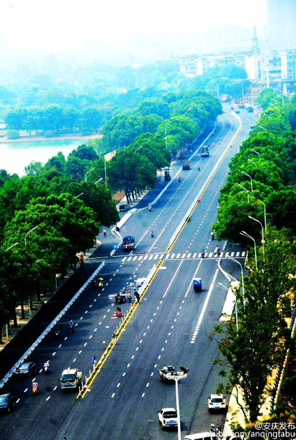 還有一條我身邊風(fēng)景獨(dú)特的大道——湖心南路,這條路經(jīng)歷了從無(wú)到有,從窄到寬,從簡(jiǎn)陋到壯觀的演變過(guò)程。1958年在大湖中間填出路基只有幾米的道路,后經(jīng)過(guò)70年、87年、97年的一次次拓寬,最近于2016年改造后,成了安慶市一條最漂亮的景觀大道之一。河堤小路,繞城而行,往來(lái)車輛如同穿梭一般,兩岸綠柳成蔭,旁邊的建筑物,掩映在綠柳蔭中,紅綠相間,景色格外迷人,街道兩旁,大樹枝繁葉茂,仿佛撐開了一把把綠色的大傘,搭成一個(gè)連綿不斷的遮陽(yáng)棚,使行人走在林陰道上,舒適涼爽。同時(shí)它也是最重要的交通要道之一,構(gòu)成了城市的血脈和骨架,這條路也昭示了安慶這座城市繁榮的發(fā)展變化和歷程。