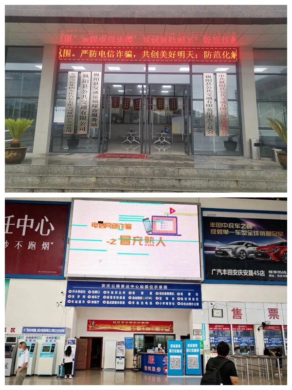為進(jìn)一步加強(qiáng)打擊治理電信網(wǎng)絡(luò)詐騙犯罪,切實(shí)提升人民群眾防范意識和法律觀念,有效遏制電信網(wǎng)絡(luò)詐騙犯罪的發(fā)生,2021年5月15日至2021年6月15日,安慶公路客運(yùn)中心站開展“防范電信網(wǎng)絡(luò)詐騙犯罪集中宣傳月”活動(dòng),活動(dòng)期間車站利用站內(nèi)電子顯示屏投放多條公益廣告,發(fā)布防范和打擊電信網(wǎng)絡(luò)詐騙的相關(guān)宣傳內(nèi)容和信息。宣傳片引得旅客及司乘人員紛紛駐足觀看學(xué)習(xí),切實(shí)營造了宣傳氛圍,提高了群眾防騙意識和能力。