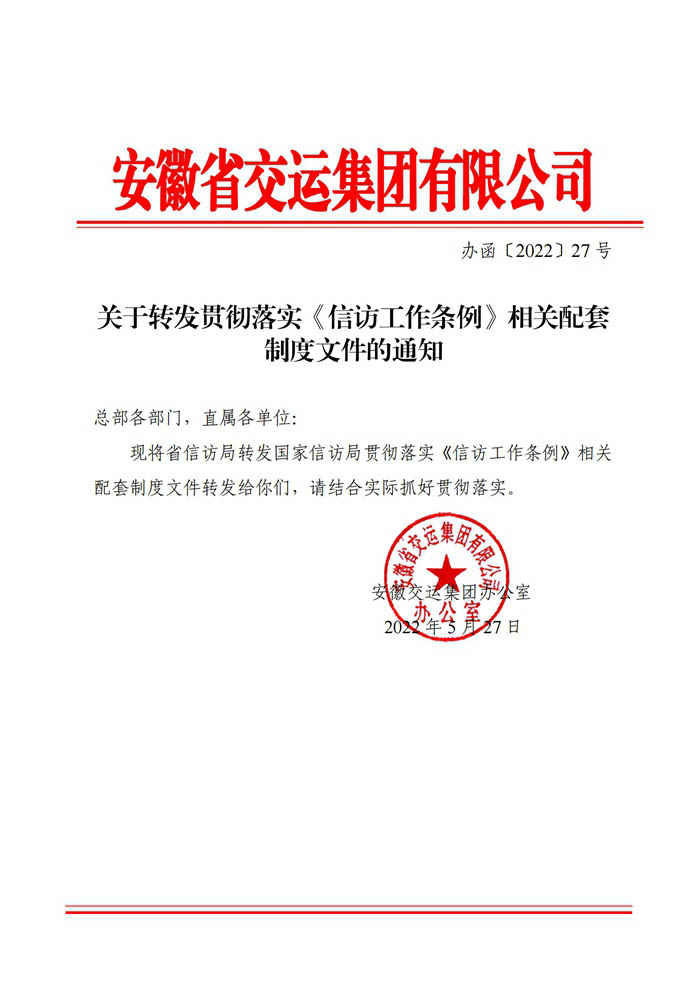 關于轉發(fā)貫徹落實《信訪工作條例》相關配套制度文件的通知