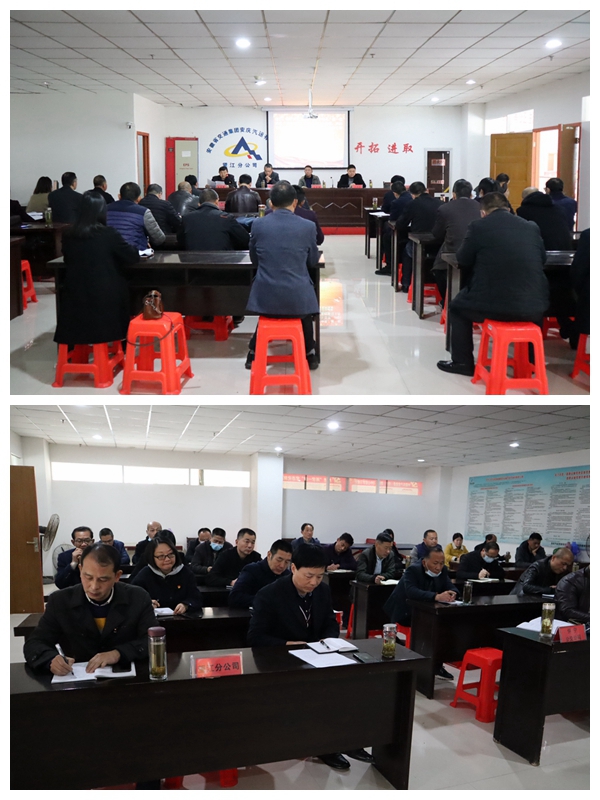 2021年3月18日下午,公司在潛山分公司會議室組織岳西和潛山兩片區(qū)單位領(lǐng)導(dǎo)班子成員及黨員代表參加,合并召開了黨史學習教育動員、新一輪深化“三個以案”警示教育部署、2021年黨的建設(shè)工作、2021年黨風廉政建設(shè)工作暨2020年度黨組織書記抓黨的建設(shè)述職評議工作會議。公司領(lǐng)導(dǎo)王中明、馮定春、左普慶出席會議。