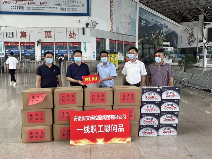 炎炎夏日,酷暑難當(dāng)。7月20日下午,省交控集團(tuán)黨委委員、紀(jì)委書(shū)記、監(jiān)察專(zhuān)員魏發(fā)斌,紀(jì)委副書(shū)記、監(jiān)察室主任程光遠(yuǎn)在省交運(yùn)集團(tuán)領(lǐng)導(dǎo)楊紅兵、許占礦,安慶汽運(yùn)公司領(lǐng)導(dǎo)王中明、蔡烈焰的陪同下來(lái)到安慶公路客運(yùn)中心站,看望慰問(wèn)奮戰(zhàn)在高溫酷暑中的一線工作人員,并為他們送去飲料、礦泉水等防暑降溫慰問(wèn)品。